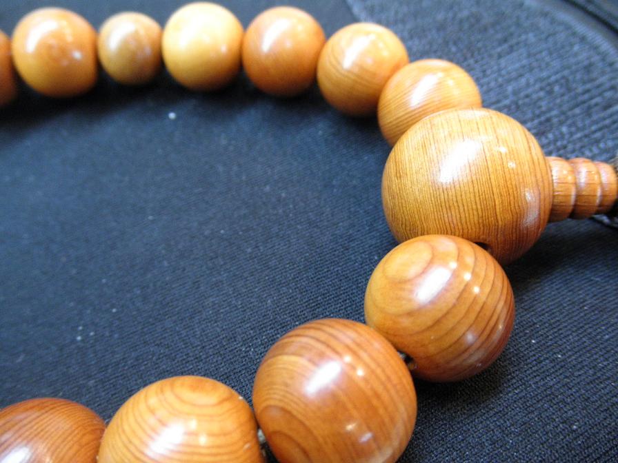 今回ご紹介させていただくお念珠も綺麗に成ってました。一つは一位(北海道などではオンコと呼ばれます)ケヤキに似ていますが、銘木の一つです。 もう一点は黒柿です。黒柿はとても貴重で珍しいです。当店でも販売はしておりますが、その後はお使いいただくお客様しだいです。